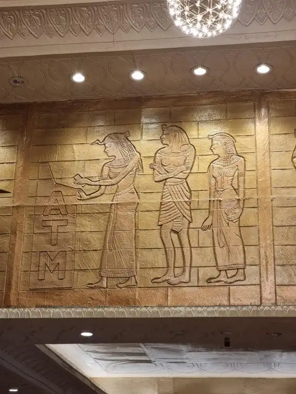 12. "В этом торговом центре, оформленном в стиле пирамид, есть стена с фараонами, стоящими в очереди к банкомату"