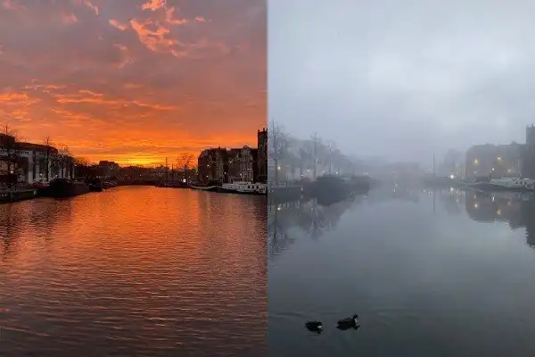 15. "Рассвет в Амстердаме, то же место, то же время, 24 часа разницы"
