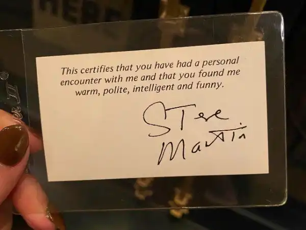 "Это подтверждает, что вы лично встречались со мной и что вы сочли меня милым, вежливым, умным и смешным. Стив Мартин".