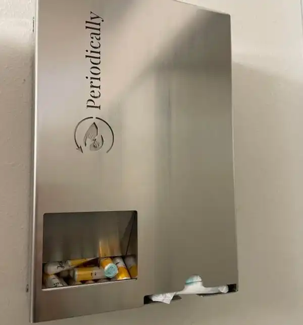 В туалете есть бесплатные женские средства гигиены