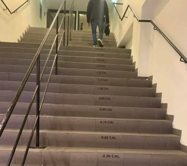 На каждой ступеньке лестницы указано количество сожженных калорий