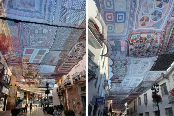 В испанской деревне женщины вяжут крючком навесы, чтобы украсить улицы и создать необходимую тень