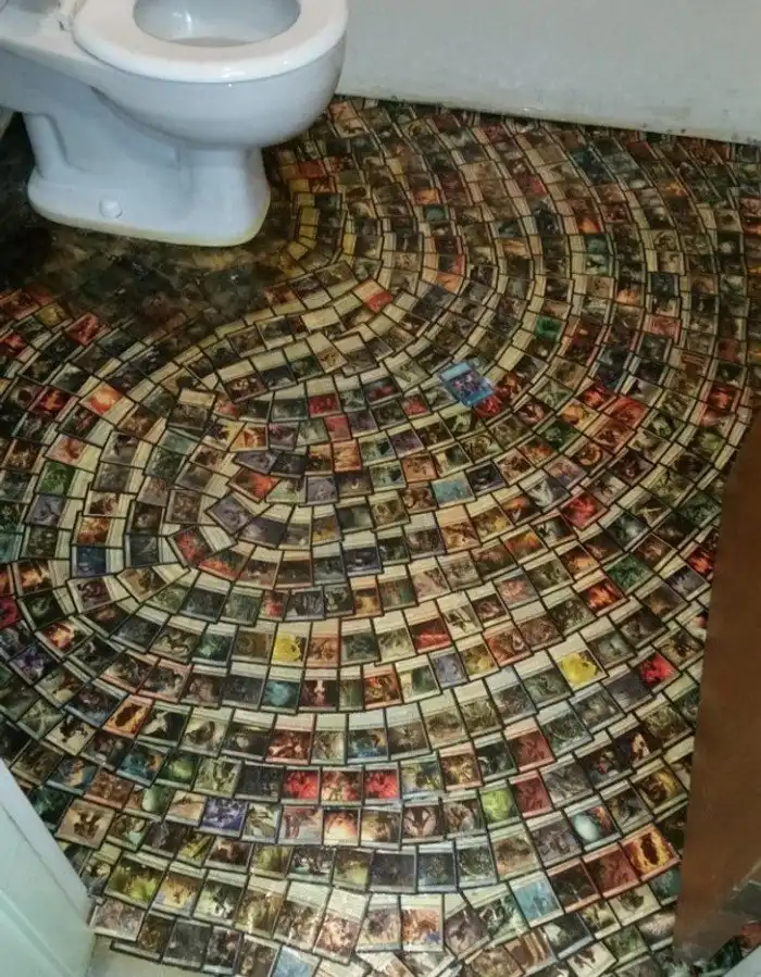 В местном игровом магазине пол уборной оформили карточками игры Magic the Gathering