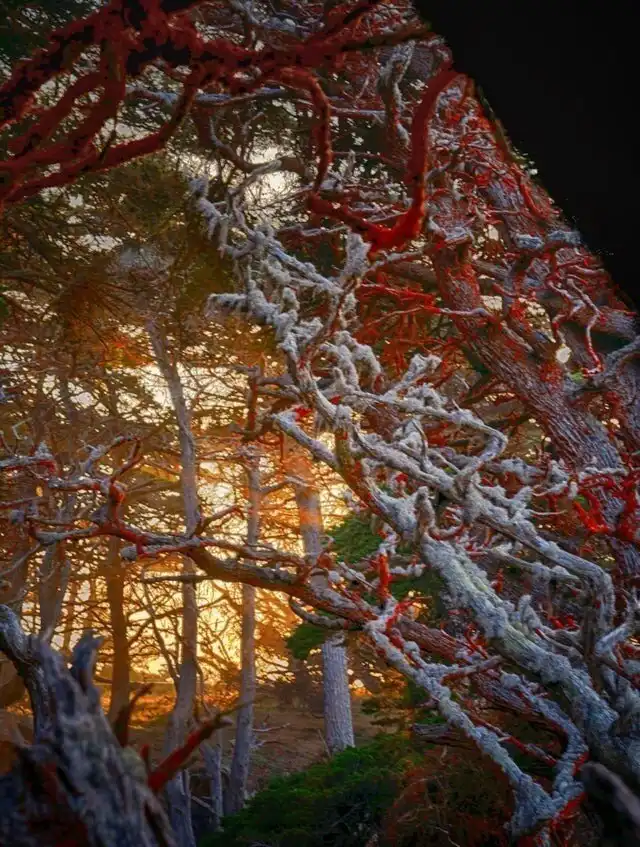 Красные мхи, во время заката, в парке штата Пойнт-Лобос, залив Монтерей, Калифорния