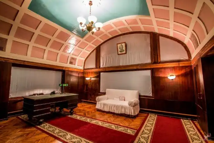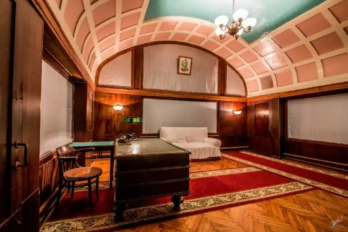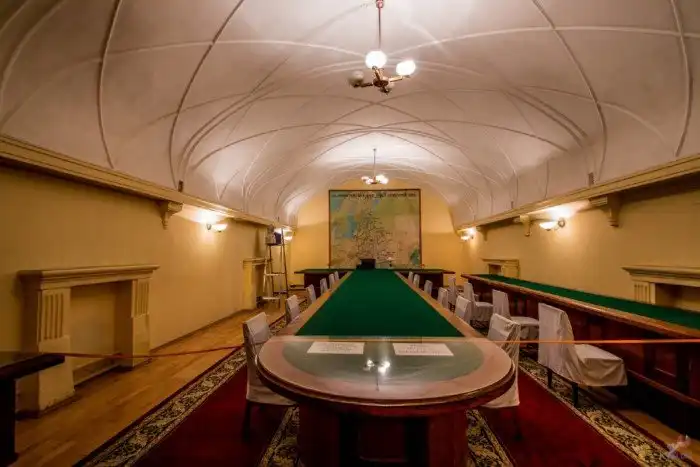 Зал заседаний.Комната, где по слухам жил Сталин, после того как объект достроили. Якобы, он оставил в Кремле своего двойника, а сам прятался здесь. Но это просто слухи которые никем официально не подтверждаются. Хотя, есть доля сомнения что не просто так Куйбышев сделали запасной столицей. Даже работники музея, хорошо знающие историю, точно не знают, был здесь когда нибудь Сталин или нет.