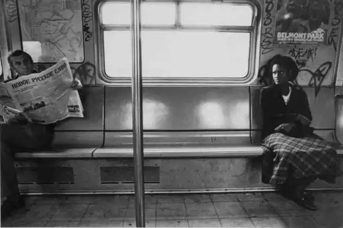 Грязный и разрисованный вагон поезда. Эмигрант из Союза, читающий газету "Новое русское слово", в тщетной попытке понять, почему Америка оказалась не такой, как рассказывали диссиденты. Чернокожая американка, настороженно смотрящая на гостя из-за железного занавеса. Интересно, о чем она думает?
