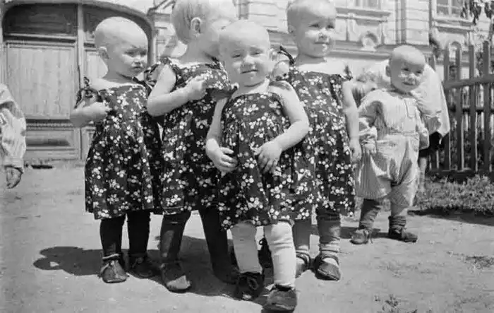5. Голландские дети играют у 155-мм американских осколочно-фугасных гаубичных снарядов М107 на улице города