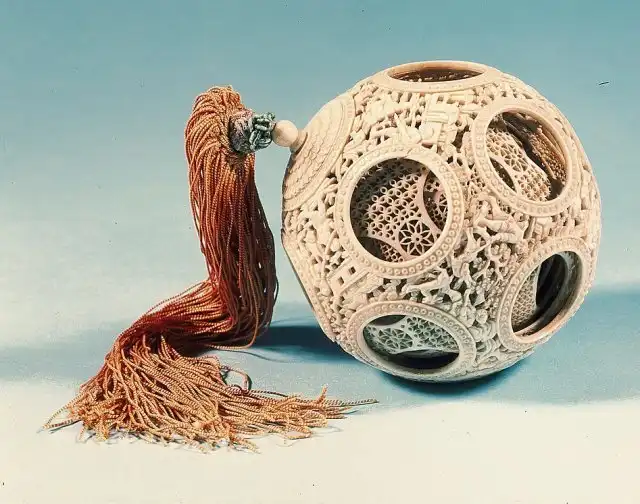 Головоломка из 11 ажурных шаров, вырезанная из цельного куска слоновой кости. Китай, XIX век