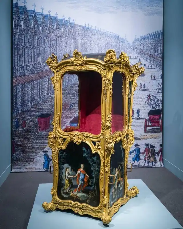 Эту богато украшенную кабину с пассажиром переносили на свои плечах 2 человека, так как для повозки европейские улочки были слишком узкими, XVIII век.