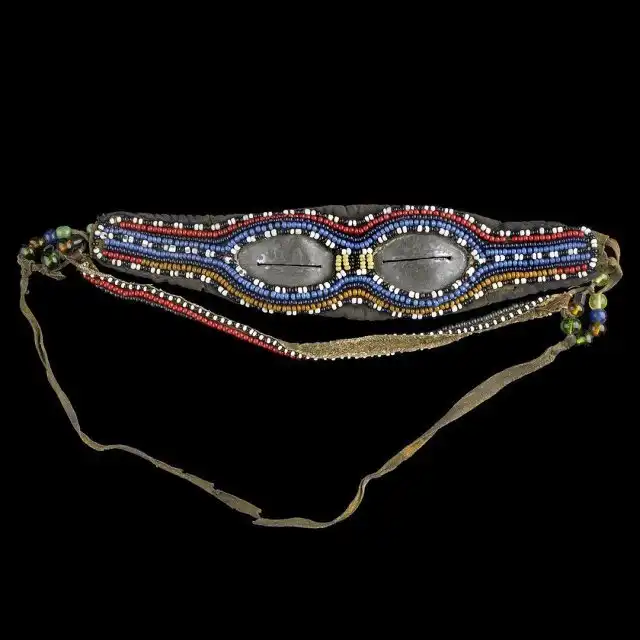 Эти очки для защиты от яркого арктического солнца были сделаны мастерами народа долганов из металла, бисера и оленьей шкуры. XIX век