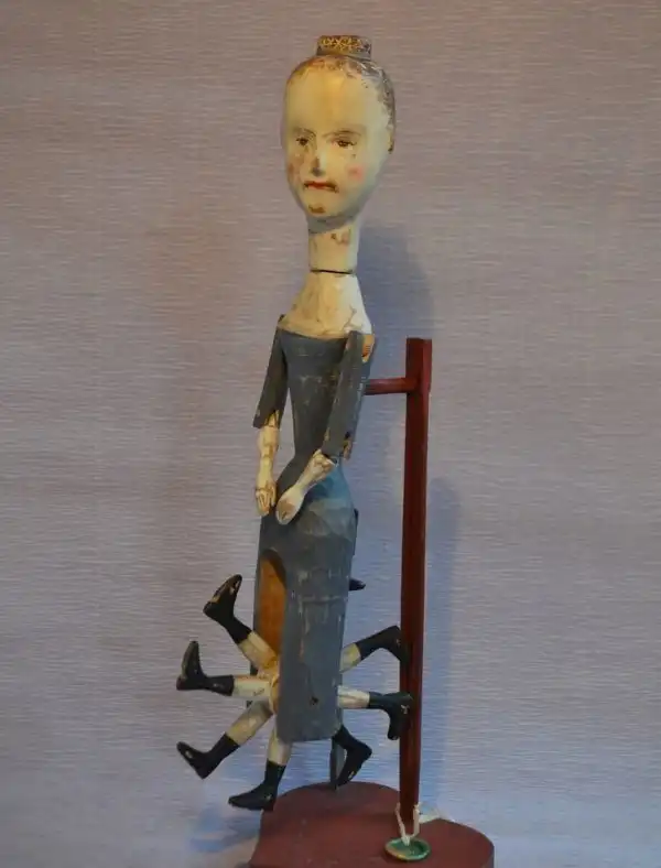 Это современная версия восьминогой куклы, которые были популярны в XIX веке. Платье скрывало ноги, и казалось, что кукла ходит.