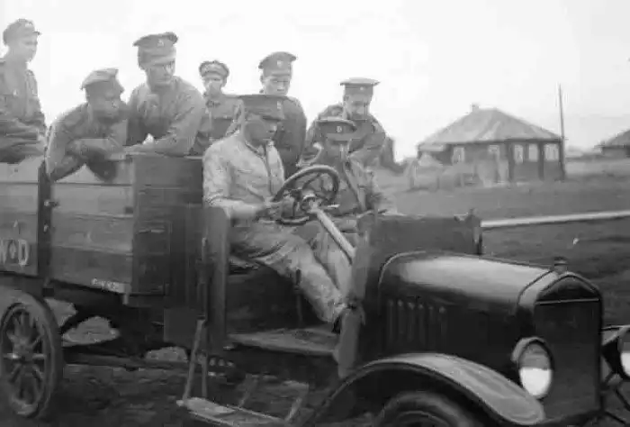 4. Солдаты армии Северной области в британской автошколе. 1919 год