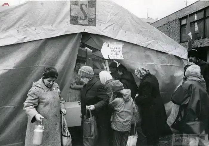 6. Очередь в палатку за немецкой похлёбкой и кашей. Санкт–Петербург, ноябрь 1991 год