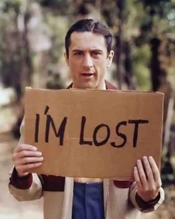21. Роберт Де Ниро, 1977 год. На картонке: "Я потерялся"