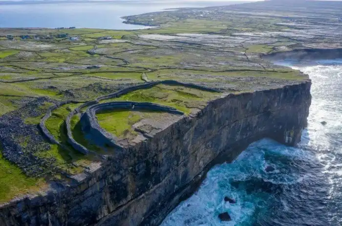 19. Дун Аонгхаса — доисторическая крепость на холме, расположенная на Инис-Мор в Ирландии, на краю скалы высотой 100 метров. Первая постройка восходит к 1100 г. до н.э. и около 500 г. до н.э.