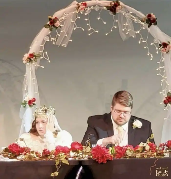 "Несмотря на мрачные лица на свадебных фото, сейчас, 28 лет спустя, мы все еще вместе, у нас четверо детей, и мы любим друг друга"