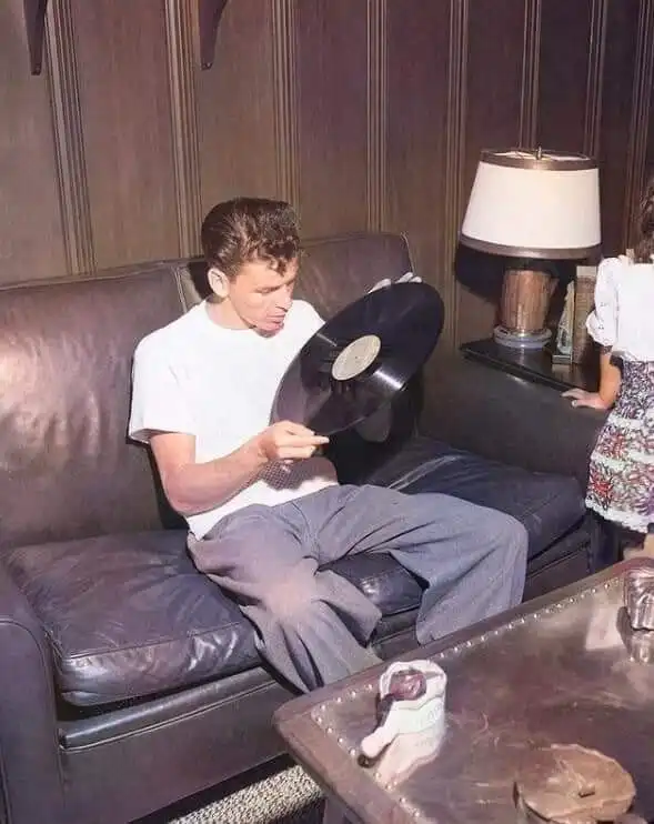 20. Молодой Фрэнк Синатра с огромной грампластинкой, 1945 год
