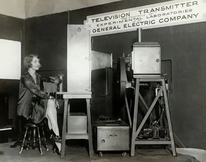 28. Мари Делрой управляет телевизионным передатчиком компании General Electric на 5-й ежегодной всемирной выставке радио, Мэдисон-Сквер-Гарден, Нью-Йорк, 22 сентября 1928 года