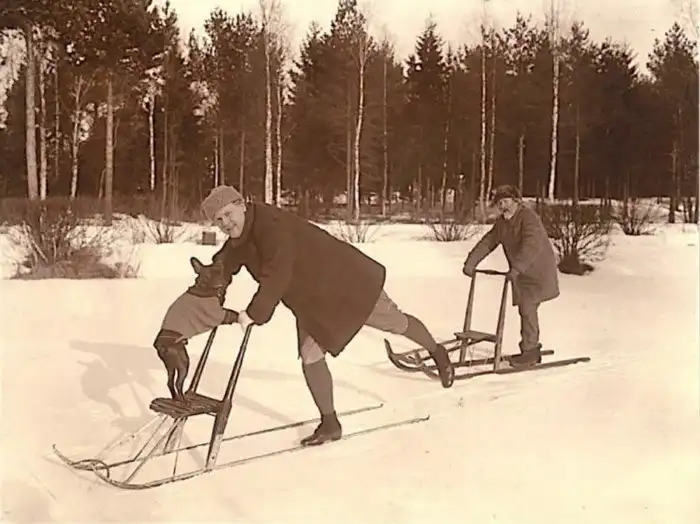 39. Федор Шаляпин и Илья Репин катаются на финских санях, 1914 год