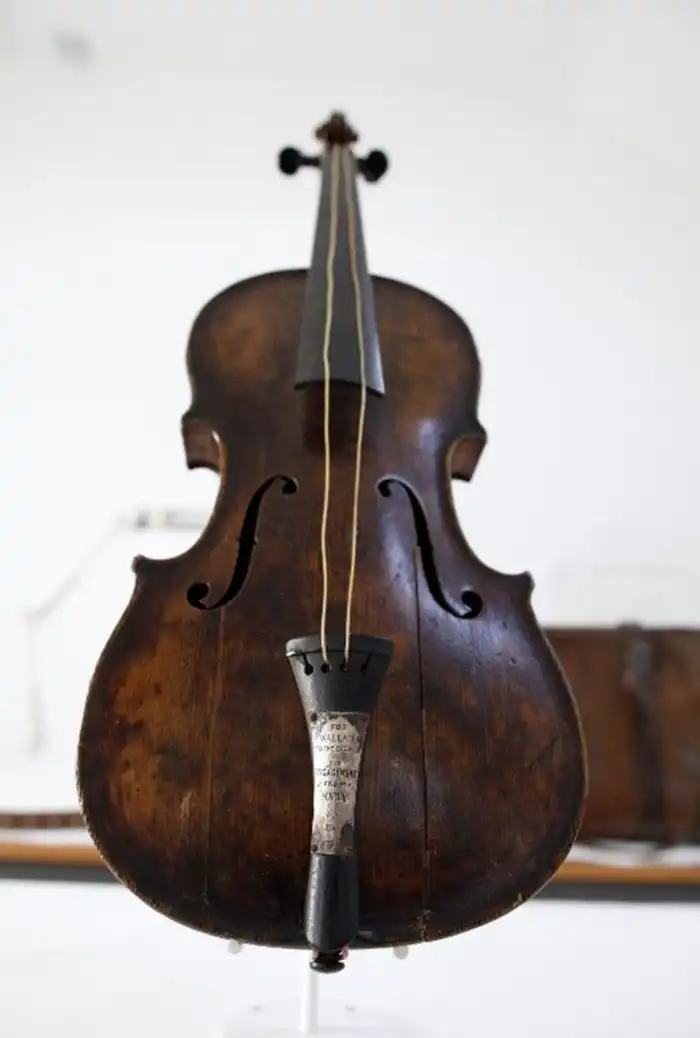 Скрипка, на которой играл Уоллес Хартли, за секунды до потопления Титаника в 1912 году. Музыкант погиб, и был найден через две недели после погружения с музыкальным футляром, прикрепленным к его телу. Благодаря этому скрипка сохранилась