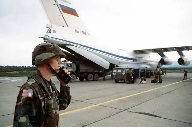 Американский военный в зоне выгрузки российских подразделений. Босния. 1996 год.