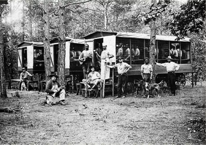 Арестованные - в немалой части, за бродяжничество, то есть, за отсутствие жилья и работы - чернокожие мужчины будут использоваться как бесплатная рабочая сила. Вагончики с заключенными охраняют надсмотрщики с собаками. Рабство, отмененное законом, просто приняло иные формы