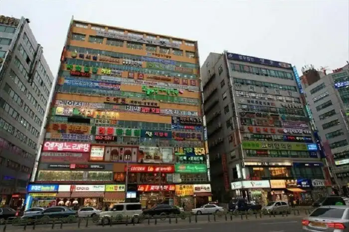 Коммерческие здания где-то в Южной Корее: сколько же на них рекламных щитов и растяжек