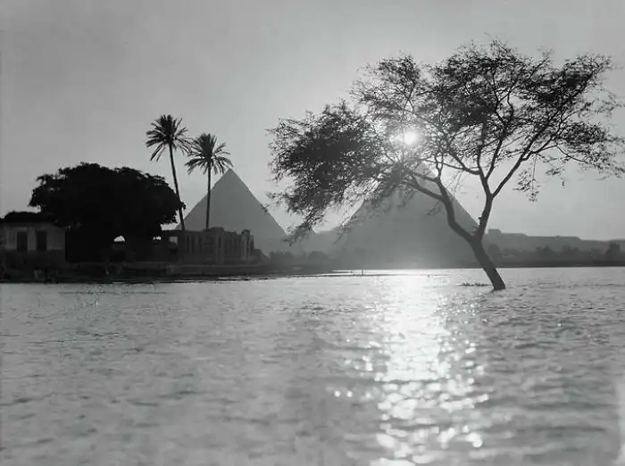23. "Вид на пирамиды Гизы вдоль реки Нил на закате, 1934 год"