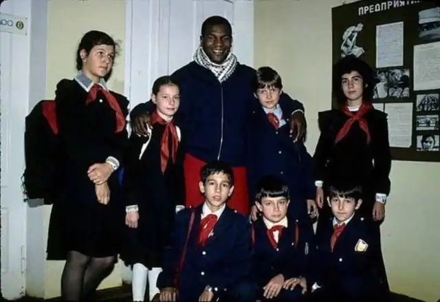 Советские пионеры одной из московских школ и Майк Тайсон, 2 ноября 1988 года.