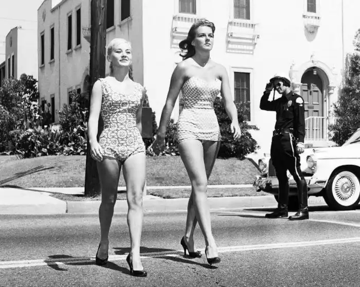 12. Девушки играют в волейбол на ходулях, Калифорния, 1942 год