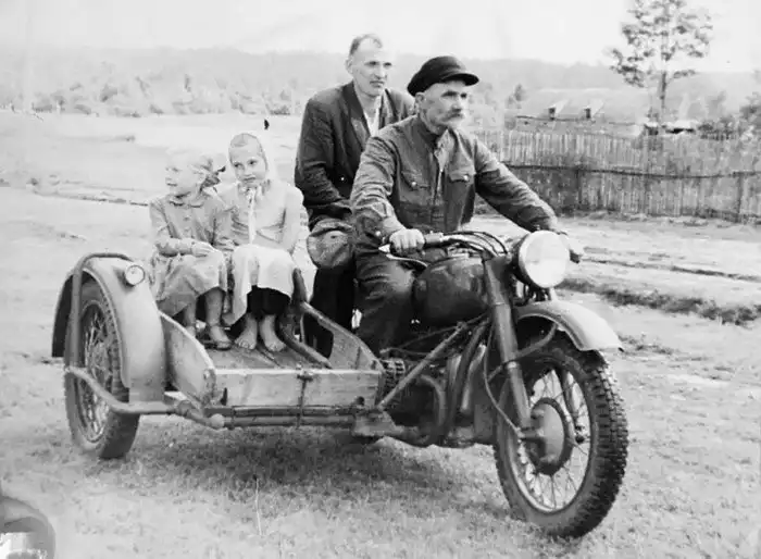 8. Мотоцикл М-72 с самодельным коробом; Горьковская область, Выксунский район, 50-е годы