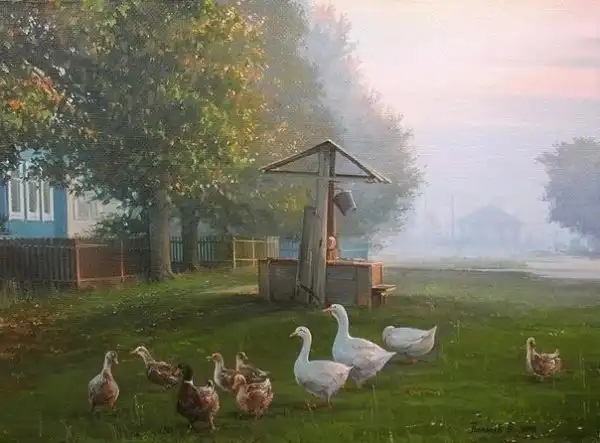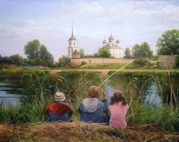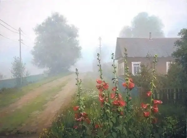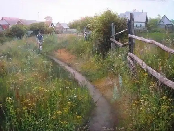 Вячеслав Палачев — молодой современный художник в третьем поколении. Его реалистичные пейзажи окунают в легкую ностальгию: кажется, что в точно такой же речке мы в детстве удили рыбу, а вот этот домик — точь-в-точь как у бабушки.