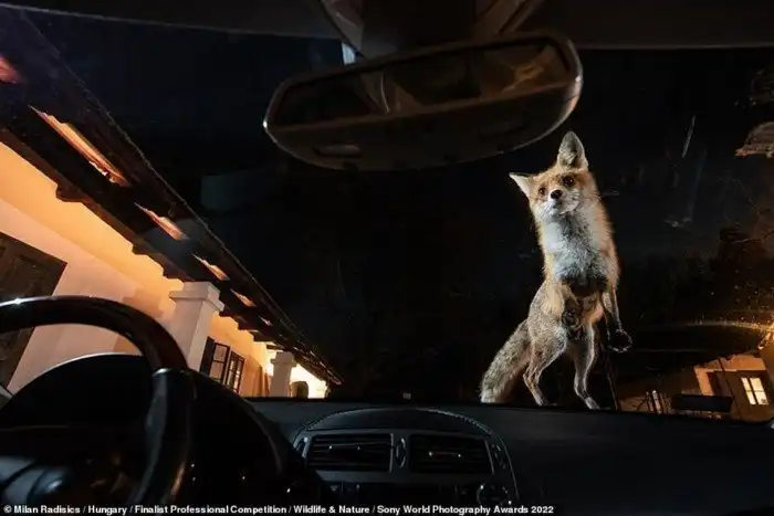 Лисица притаилась в деревьях. Фотограф Milan Radisics, Венгрия