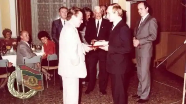 Награждение офицера отдела КГБ Владимира Путина золотым значком дружбы между Германией и Советским Союзом. Дрезден, ГДР, 21 ноября 1987 года.