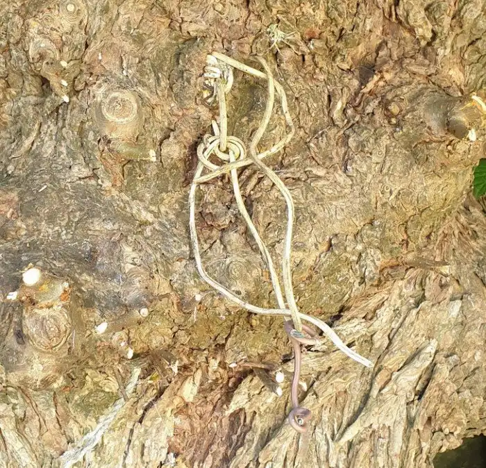 9. «Веревка для белья со временем вросла в дерево. Думаю, она провисела так около 30 лет»