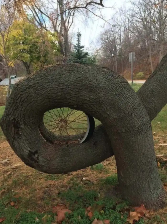 Человек часто повреждает деревья, случайно врезаясь в них на авто. Но природа тоже в долгу не остается. Теперь этот транспорт точно уже никуда не уедет. А вам попадались примеры феноменальной способности деревьев расти, несмотря на любые преграды?