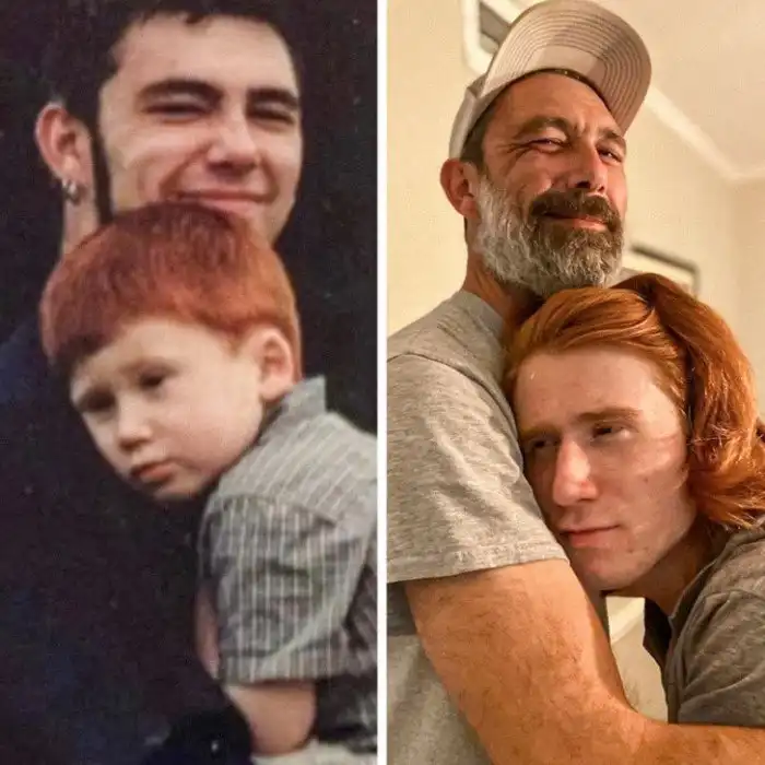 15. «На этих выходных мои родители воссоздали семейный портрет со мной и братом. 15 лет прошло между этими 2 фотографиями»