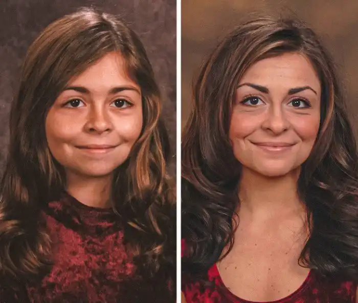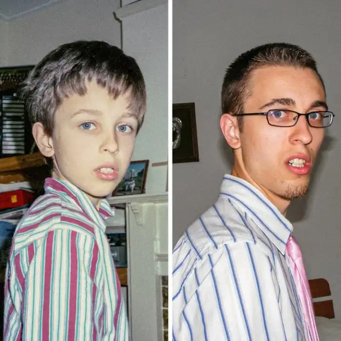 12. «Я собираюсь поместить эти фотографии в двойную рамку и подарить маме на день рождения. Это я с разницей в 15 лет»