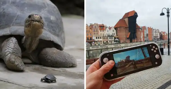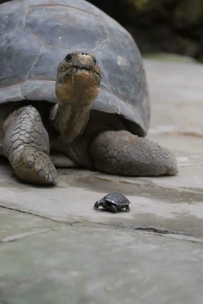 4. Взрослая и новорожденная галапагосская черепаха
