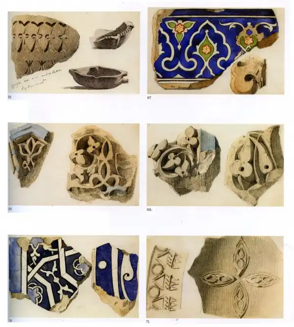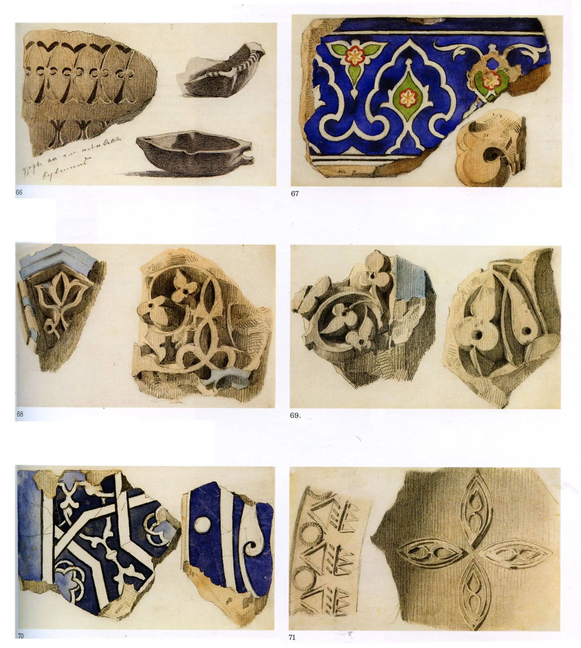 68. Обломки рельефных поливных изразцов с растительным орнаментом