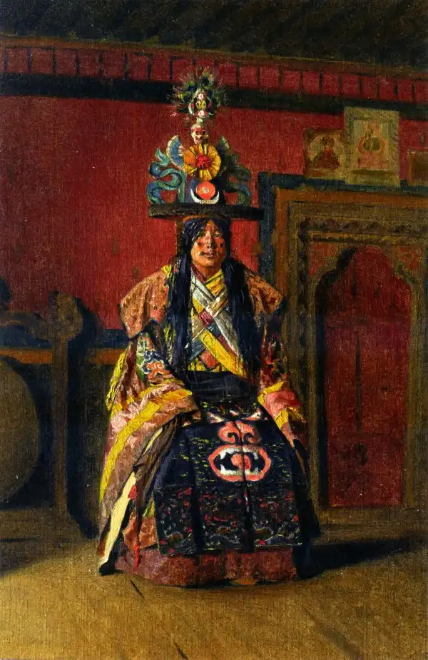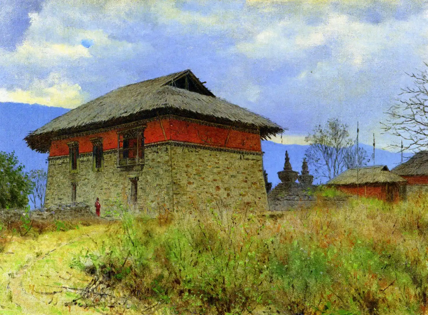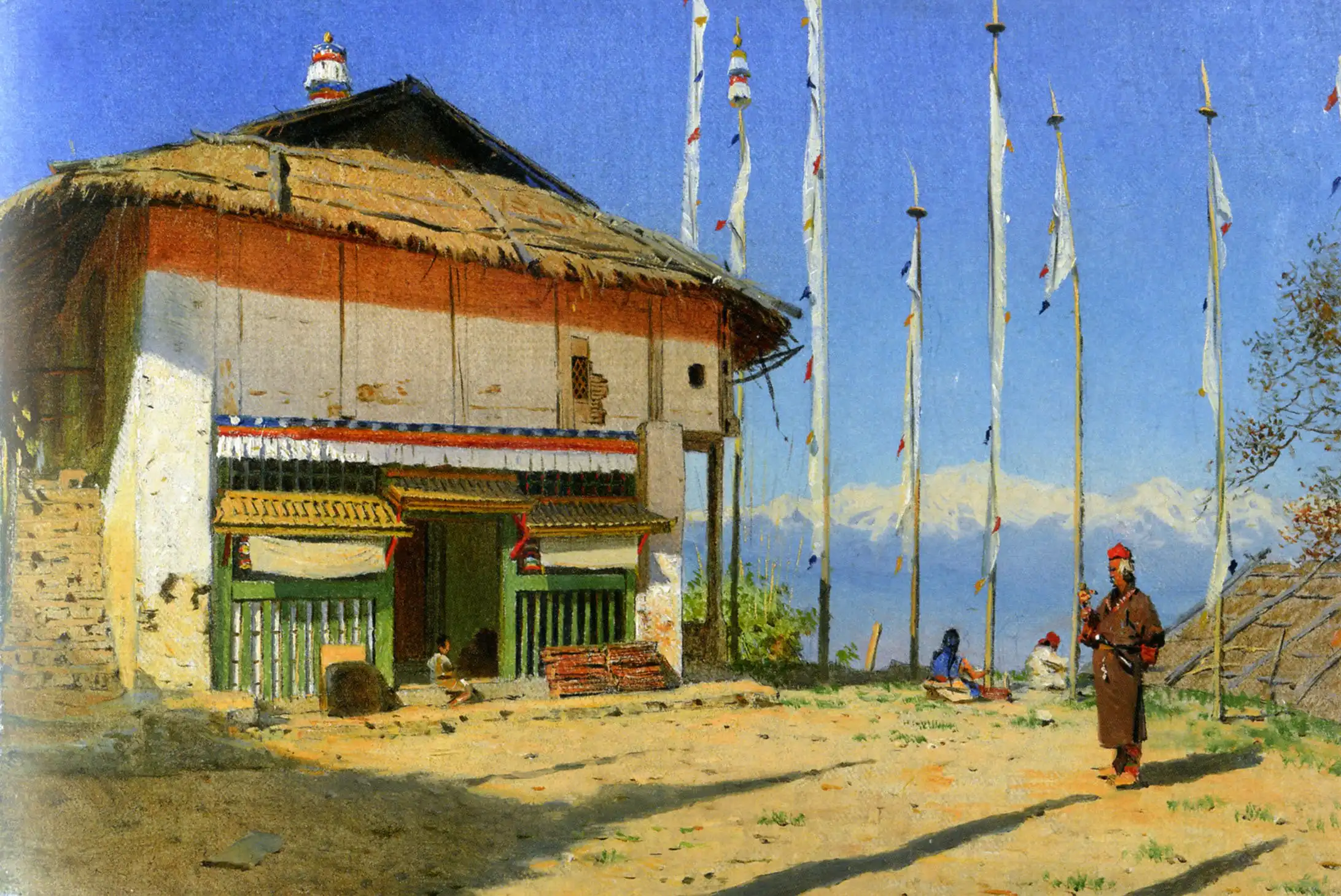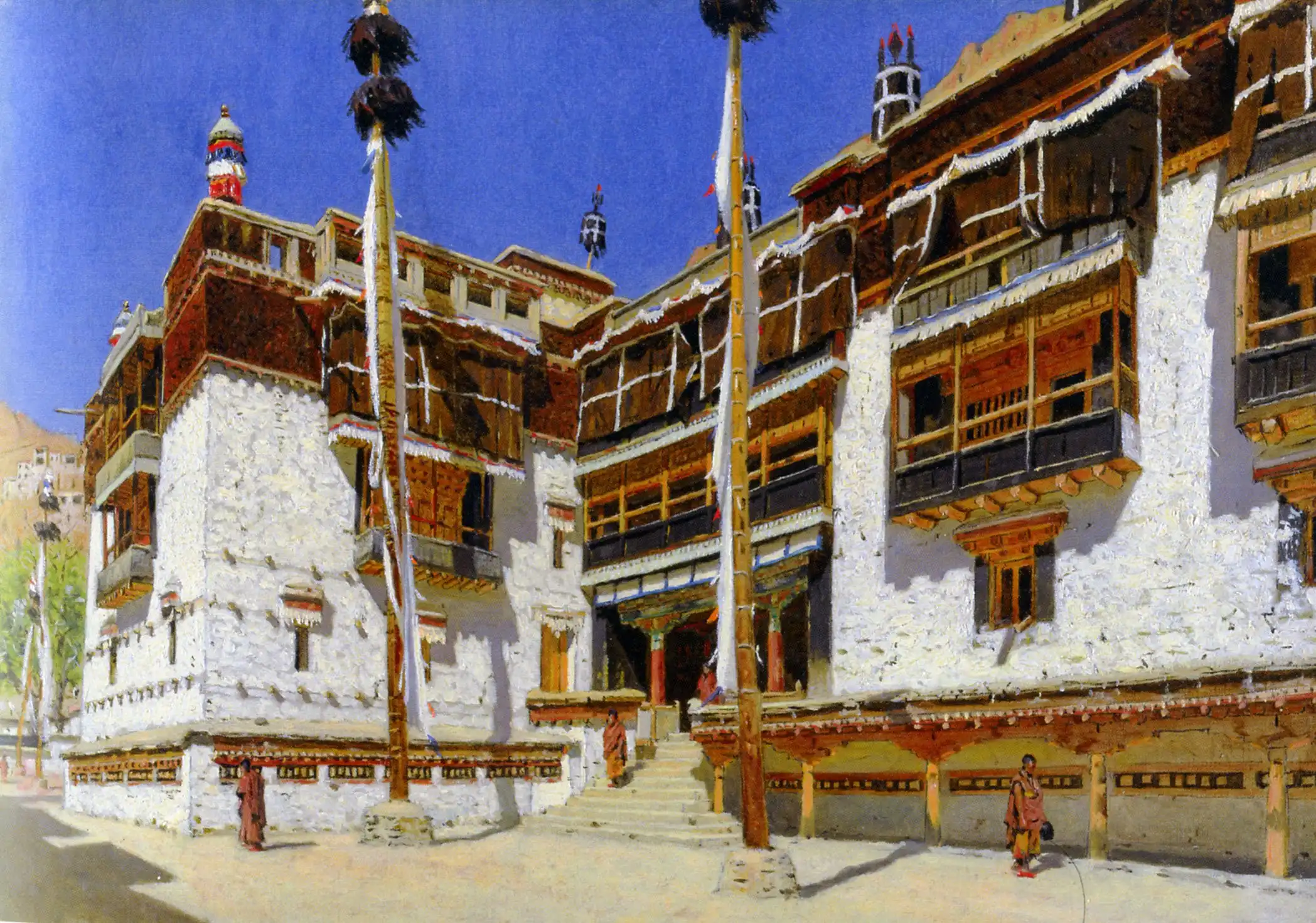 В княжестве Сикким, которое в то время находилось под британским протекторатом, художник посетил буддийский монастырь Санга Чолинг (Чингачелинг), основанный в XVII веке ламой Лхадзун Чемпо.