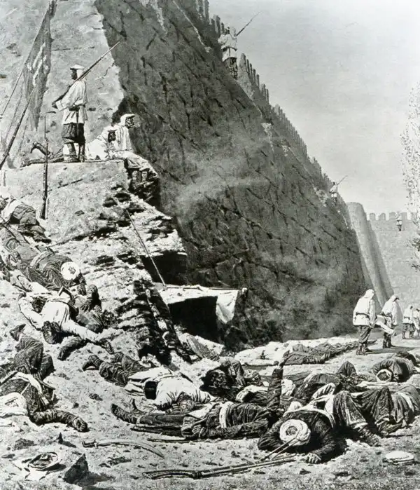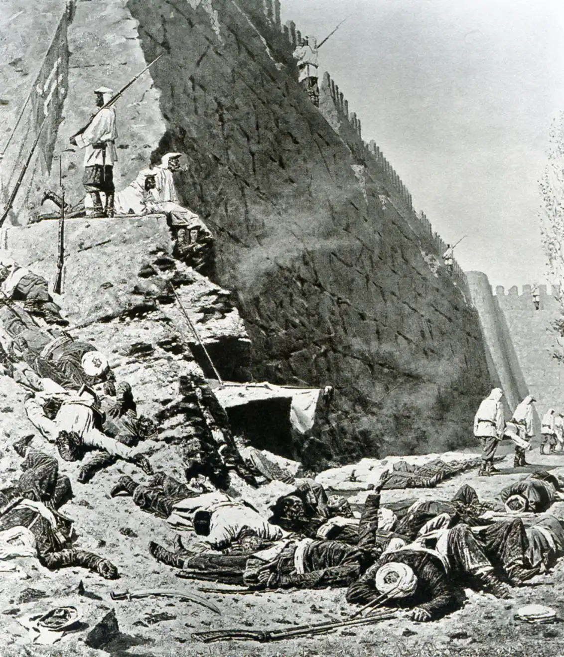 Туркестан – город недалеко от реки Сырдарьи, до XIX века столица (Йассы) Казахского ханства. Город был взят русскими войсками 12 июня 1864.