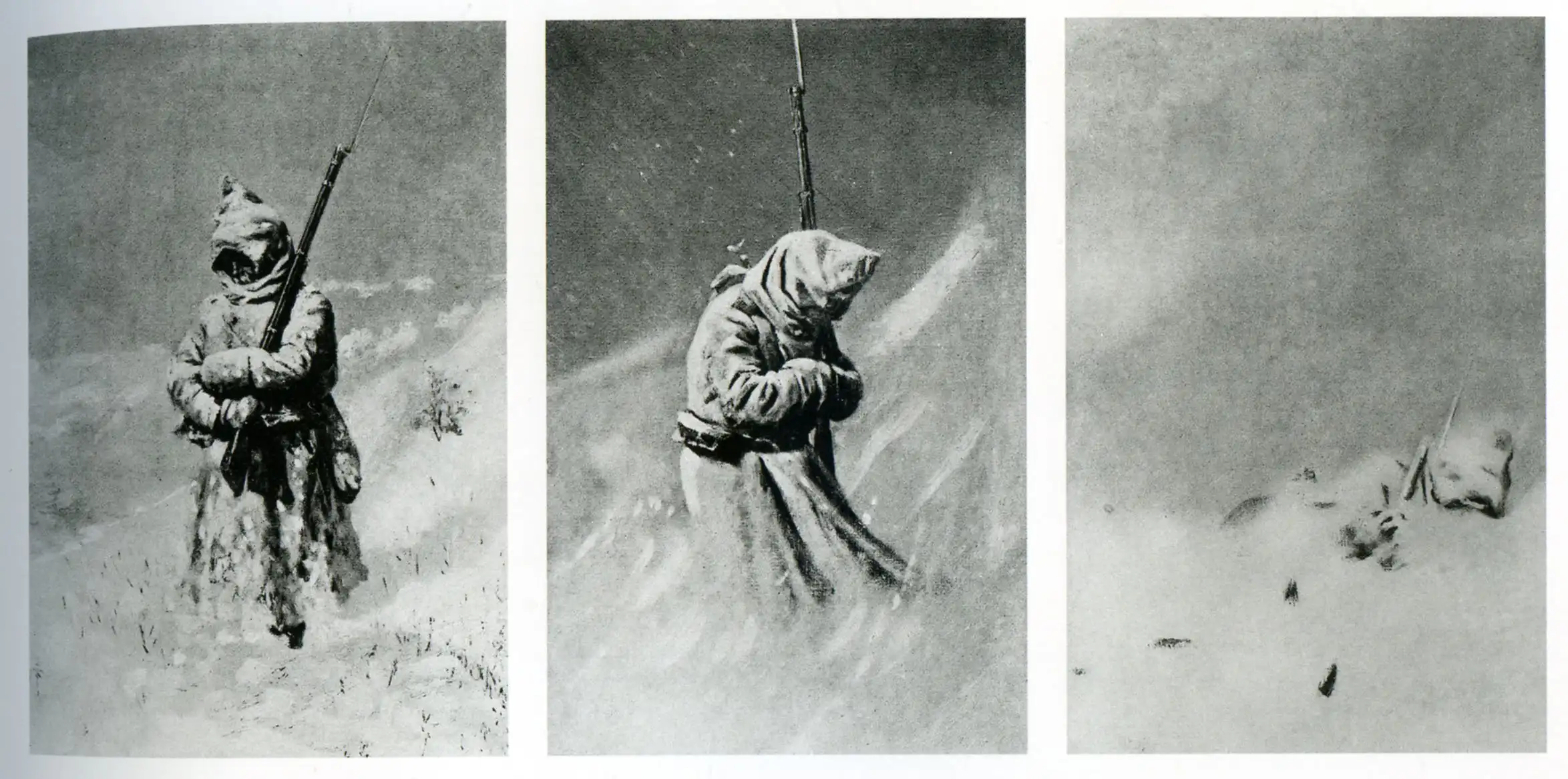 Верещагин не раз приезжал на перевал и видел тяжёлую обстановку “шипкинского сидения” русской армии. Бойцам приходилось отбивать постоянные атаки турок, вдобавок они страдали от нехватки продовольствия, питьевой воды и тёплого обмундирования. Необыкновенная стойкость и выносливость простых солдат в условиях изнуряющей летней жары и жестоких зимних морозов стали для художника примером истинного героизма при создании картин. Фактически брошенные главным командованием на произвол судьбы, русские солдаты удерживали перевал как ворота на юг страны. “На Шипке всё спокойно” – фраза из рапорта начальника Шипкинского отряда генерала Ф.Ф. Радецкого, ставшая крылатой благодаря картине Верещагина. Как горькая сатира звучит название триптиха, каждая часть которого изображает замерзающего намертво часового, не дождавшегося смены и не покинувшего свой пост. Картина звучит своеобразным реквиемом по сотням и тысячам русских солдат, отдавших жизнь в борьбе за национальное освобождение славянских народов от гнёта Османской империи.