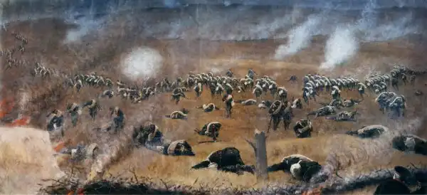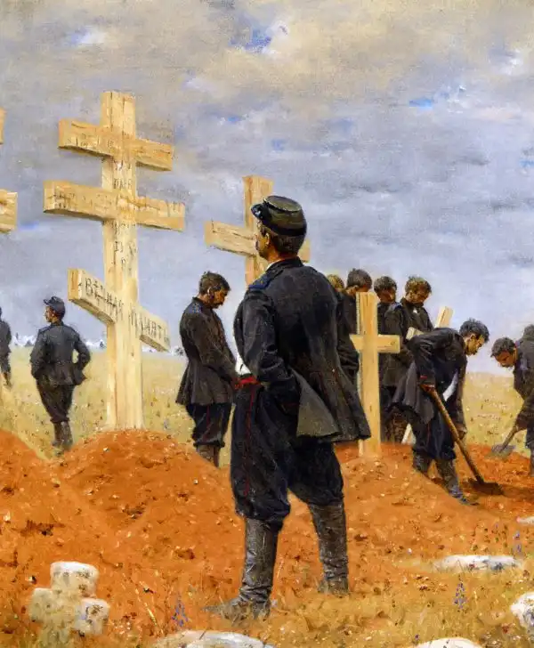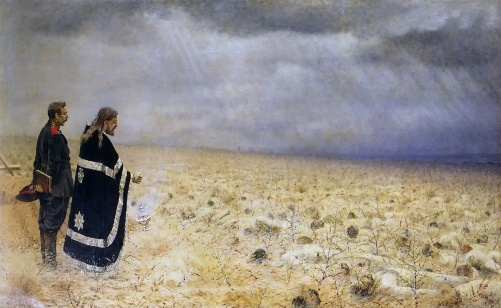 В июне 1877 года вместе с экипажем миноносца “Шутка” Верещагин участвовал в атаке на турецкий пароход-фрегат, во время которой получил серьёзное ранение. За неудачную, но героическую попытку лейтенанта Н.И. Скрыдлова, товарища художника по Морскому кадетскому корпусу, потопить турецкий монитор Верещагин едва не поплатился жизнью. Выздоровление в бухарестском госпитале было долгим, но закончилось благополучно, во многом благодаря заботе сестёр милосердия, и уже в конце лета художник вернулся в действующую армию. Добравшись до ставки великого князя Николая Николаевича, флигель-адъютантом которого он состоял, Верещагин принял участие в третьем штурме Плевны. Крепость была укреплена турками, две попытки взять её малыми силами оказались неудачными. Штурм, назначенный на 30 августа в честь тезоименитства Александра II, стоил русским войскам тяжёлых потерь и завершился бесславным поражением. Художник был глубоко потрясён увиденным и пережитым в трагические дни “третьей Плевны”, но душевная рана стала ещё глубже, когда он узнал, что во время штурма погиб его младший брат Сергей, а брат Александр ранен. Верещагин вспоминал, как спустя три с половиной месяца, когда Плевна наконец сдалась, М.Д. Скобелев заказал отслужить панихиду по погибшим на редуте, отбившим пять яростных атак противника. Михаил Дмитриевич рассказывал: “Чтобы легче идти на штурм, взбираться на высоты, солдаты побросали шанцевые инструменты”, а когда турки напали, им пришлось рыть окоп штыками и голыми руками. Они успели выкопать только малую канавку, как подоспевшие турки подняли на штыки русских воинов. Скобелев “горько плакал над той самой едва заметной канавкой, рытой пальцами”, а вместе с ним плакали Верещагин и большинство присутствующих.