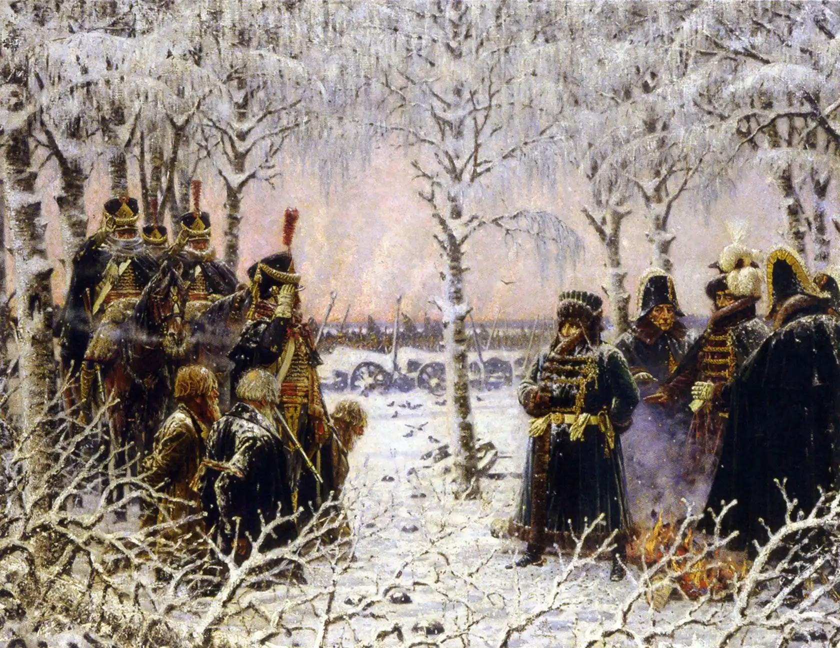 В 1887 году Верещагин начал вынашивать замысел серии картин, решив посвятить её Отечественной войне 1812 года. Впервые художник-баталист обратился к давней истории, рассказывающей о борьбе русского народа с французскими завоевателями, а не к современным военным событиям. К концу XIX столетия тема наполеоновских войн уже была всесторонне освещена в искусстве. Верещагин избрал метод исторической реконструкции и решил правдиво, порой опровергая общепринятое мнение, воссоздать сцены войны, пытаясь показать обществу картины подлинной победы и бесславного поражения.