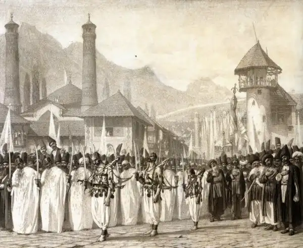 Слово “башибузук” (тур. “баш” – голова, “бузук” – испорченный, бешеный) в дословном переводе означает “безбашенный”, сопоставимо с русским словом “сорвиголова”. Отряды башибузуков обычно вербовались из наиболее воинственных племён Османской империи. Воины снабжались оружием и продовольствием, но им не выплачивалось жалование. Хорошо вооружённые, но не поддающиеся организации и дисциплине, башибузуки отличались жестокостью, занимались мародёрством и насилием, чинимым над мирными жителями. Регулярные войска не раз были вынуждены их обезоруживать. Во время Русско-турецкой войны слово “башибузук” стало нарицательным для характеристики человека, способного на самое безжалостное злодеяние.
