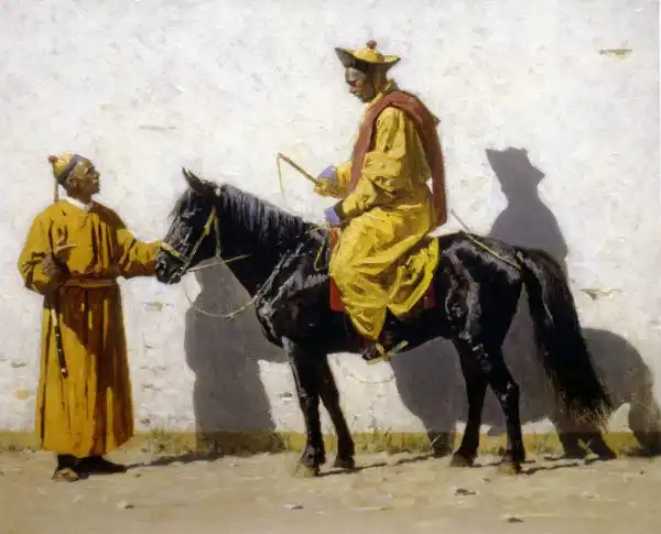 Купив лёгкий тарантас в Оренбурге, Верещагин позднее записал: “Вероятно, я первый дерзнул отправиться в этом лёгком экипаже за две тысячи вёрст”.