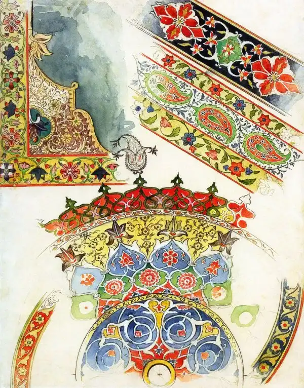 Этюд написан в Дели в Красном форте, основанном пятым императором династии Великих Моголов Шах-Джаханом I, перенёсшим сюда столицу государства из Агры. В архитектуре форта гармонично сочетаются черты индийского, персидского, тимуридского стилей.