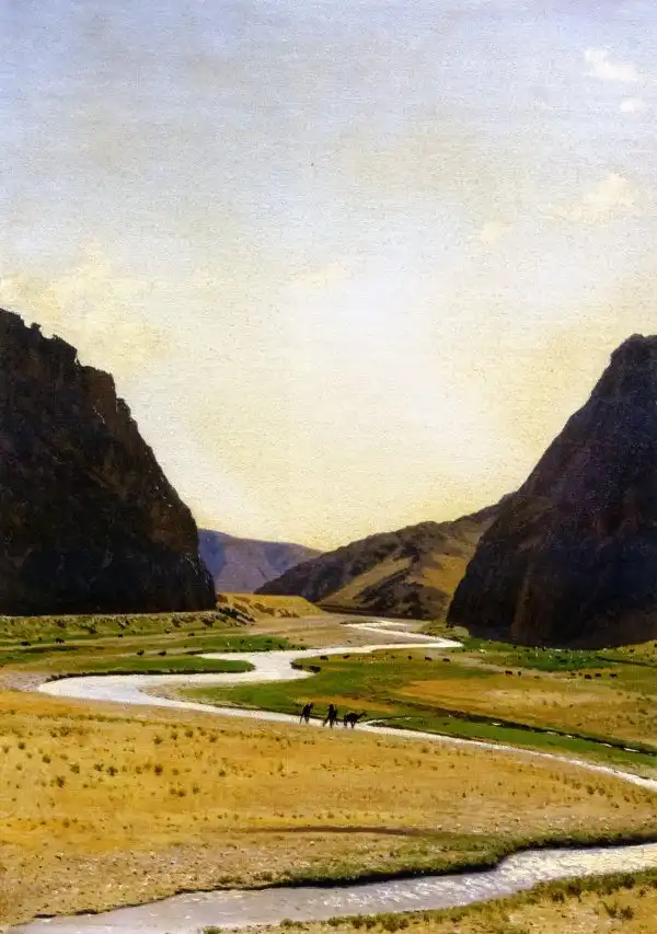 Караван яков, нагруженных солью, около озера Цо-Морари, на границе Западного Тибета. 1875