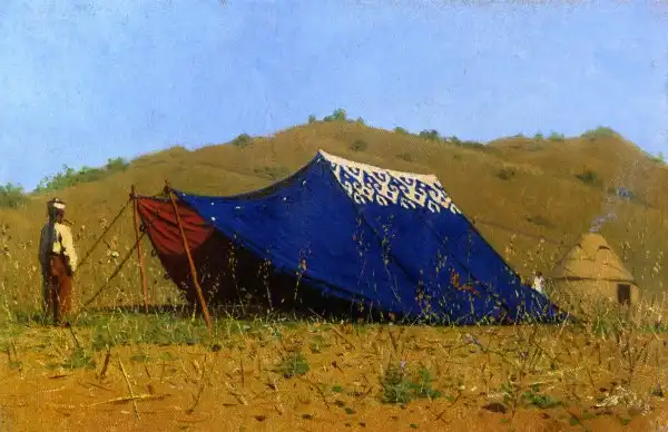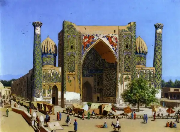 “Скоро Верещагину стало и Кавказа мало, и он поехал в Туркестан с намерением видеть войну. “Это сущая каторга проехать от Оренбурга до Ташкента”, - пишет Верещагин в Tour du monde. И однако же он эту каторгу храбро проделал из любви к живописи и новизне, представляемой ему в том краю природою, людьми и жизнью. …Он не переставал ни единой, кажется, минуты смотреть и смотреть, рисовать и рисовать”. (Стасов В.В. Василий Васильевич Верещагин)
